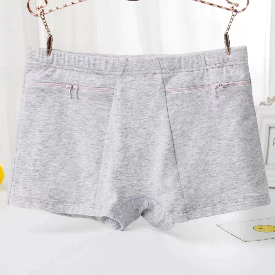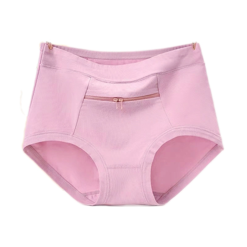 Large size with panty panties zipper anti -theft cotton female middle -aged and elderly pocket mothers middle waist female triangle head
