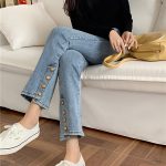 | nameOriginal | Large size velvet straight-leg spring high-waist slim jeans |