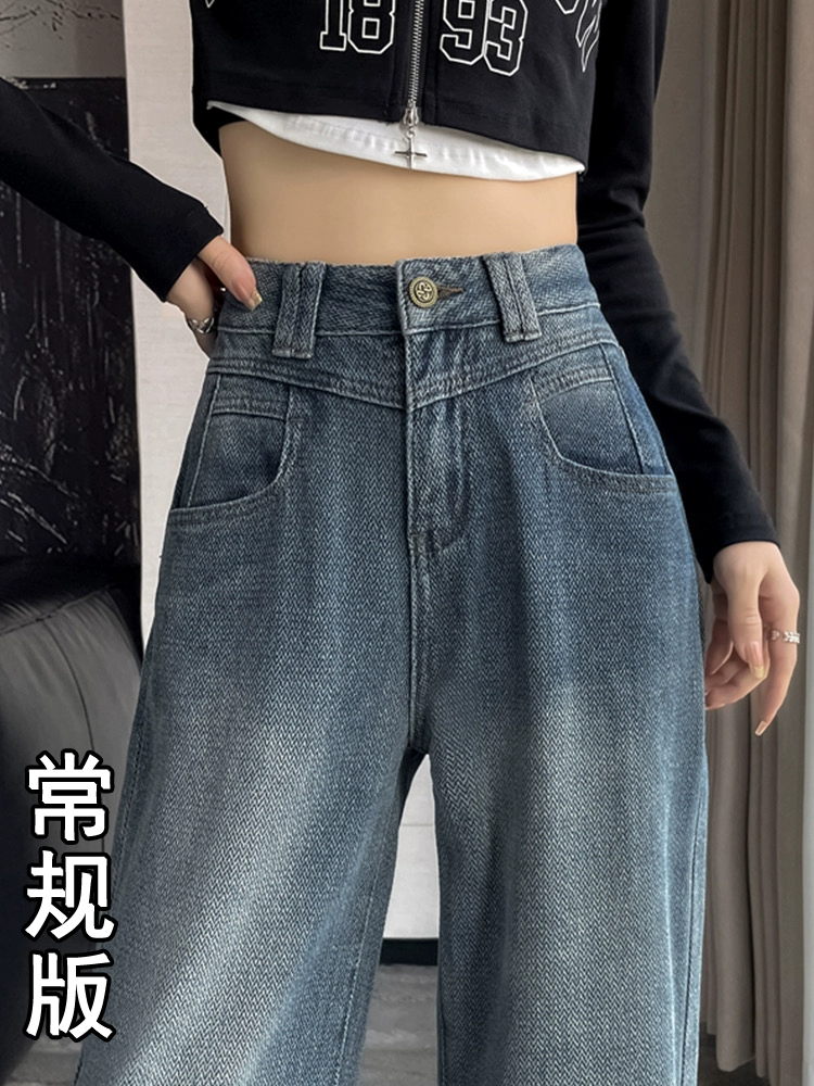 | nameOriginal | Large size vertical straight spring fat mm high waist jeans |