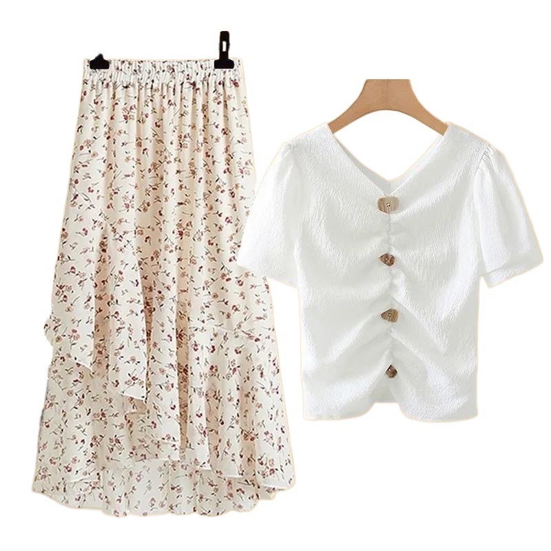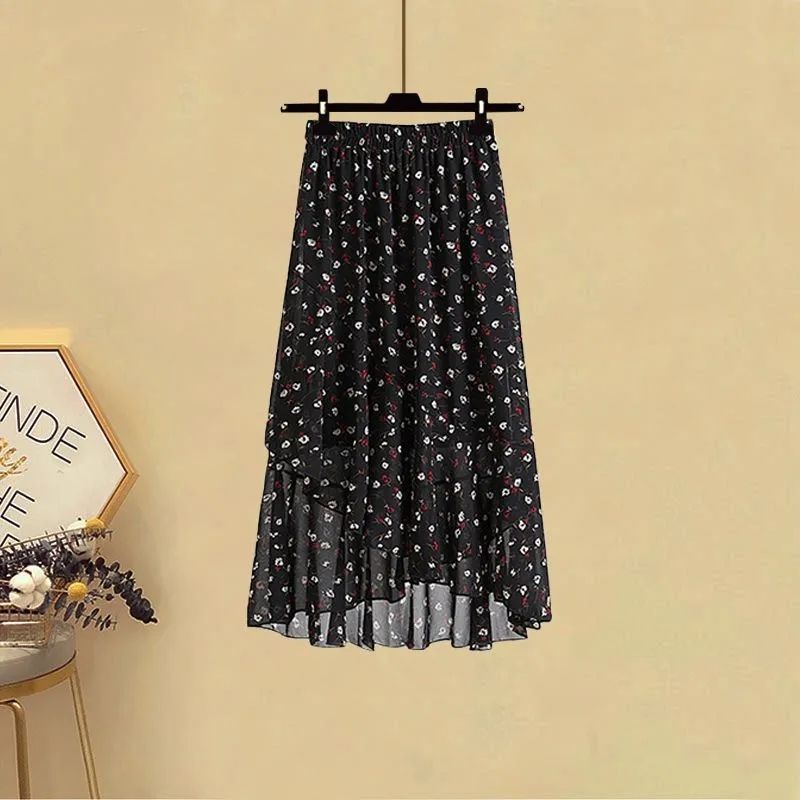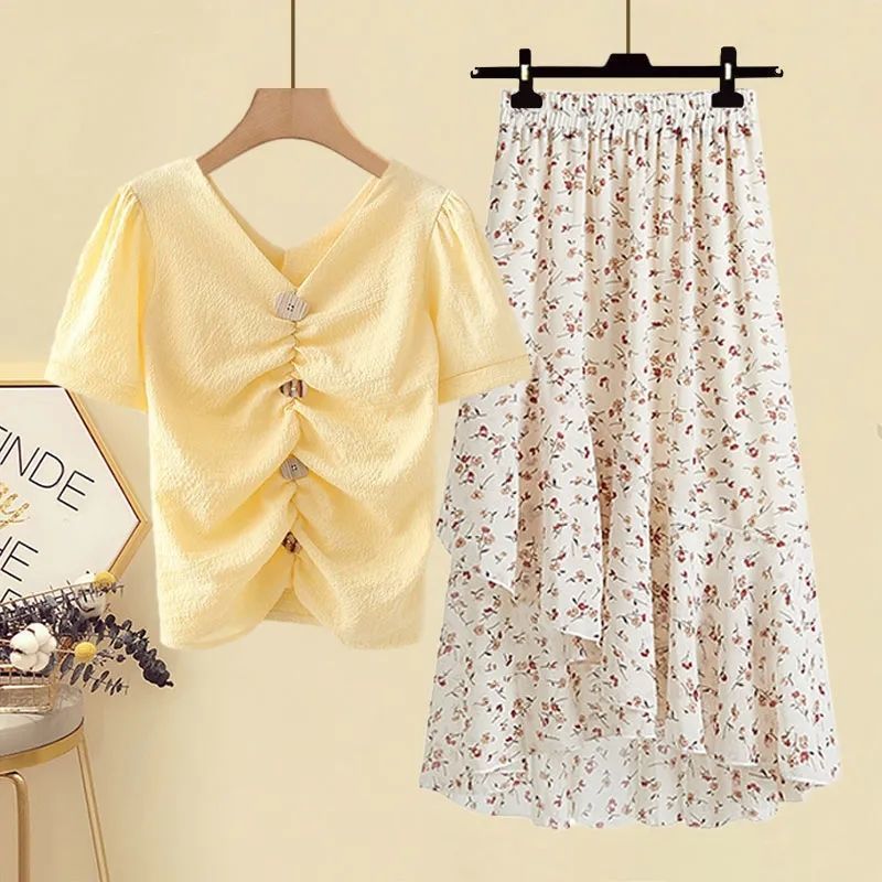 | nameOriginal | Large size women's 200kg fat sister summer suit women's slimming temperament chiffon T-shirt high waist skirt two-piece set |