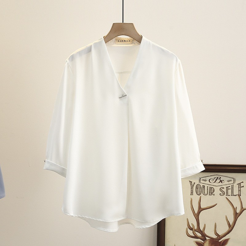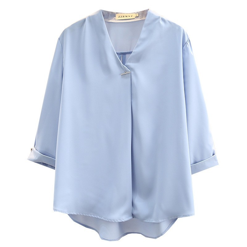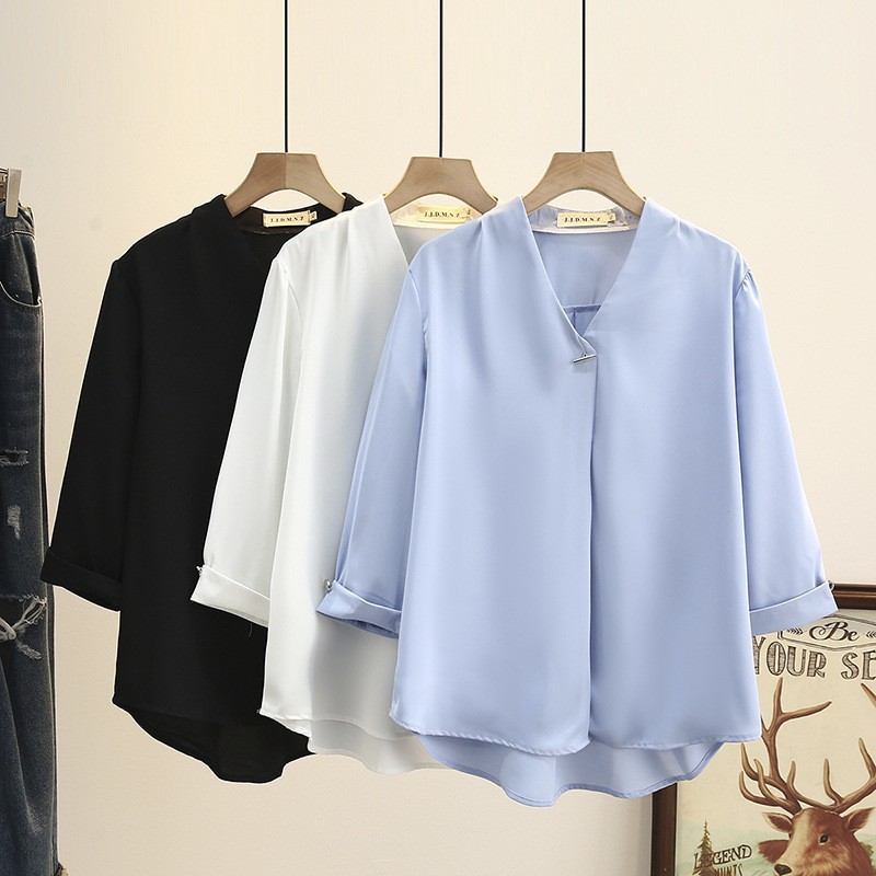 | nameOriginal | Large Size Women's All-match Top Summer New 200 Jin Chubby MM Elegant V-neck Chiffon Shirt Simple Shirt 8432 |