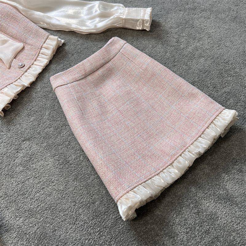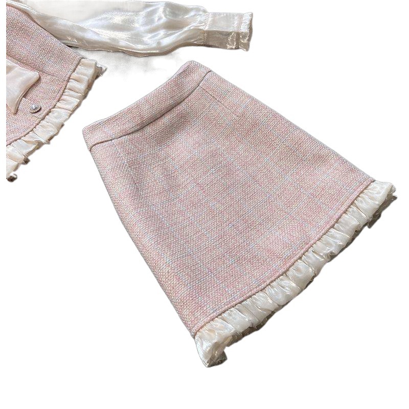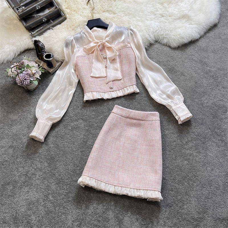 | nameOriginal | Large size women's autumn suit women's 2023 new Chanel style sweet bow shirt skirt two-piece suit fashion |