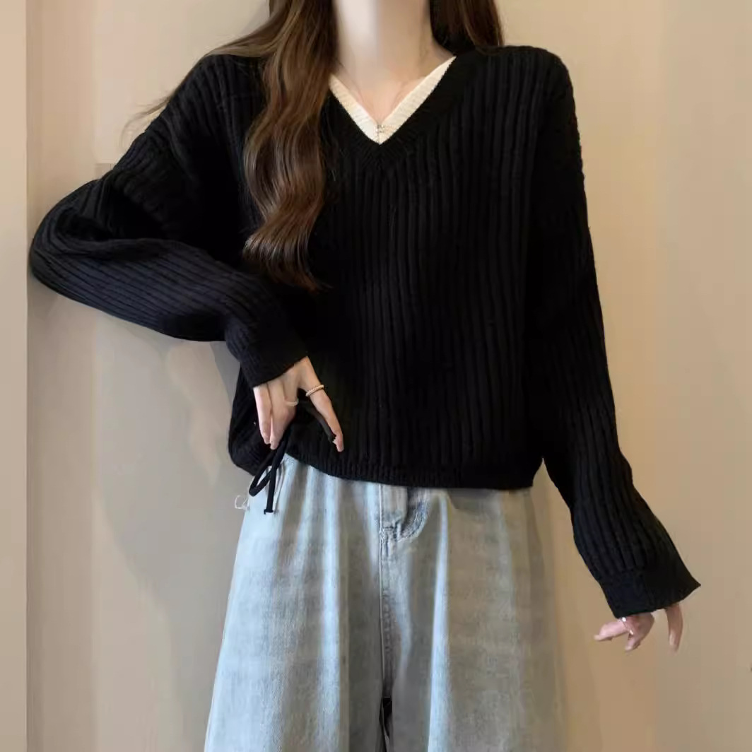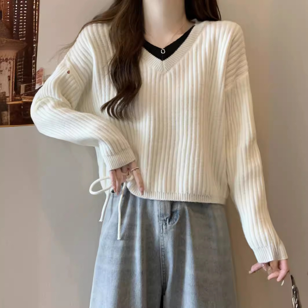 | nameOriginal | Large Size Women's Clothing Chubby Girl Early Spring 2024 New Fake Two-piece V-neck Unique Chic High-end Knitted Sweater Small Shirt |