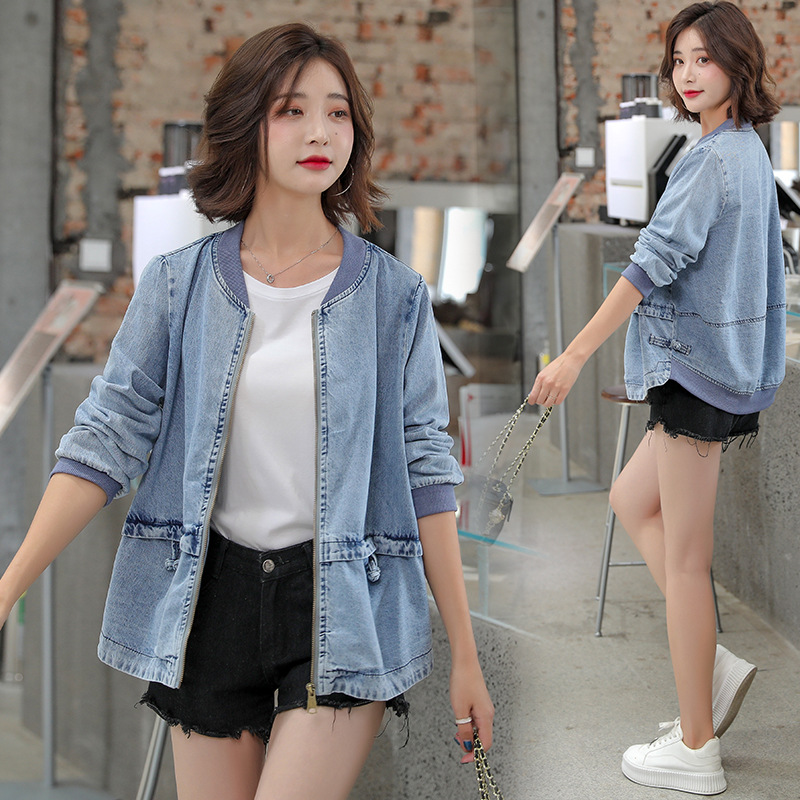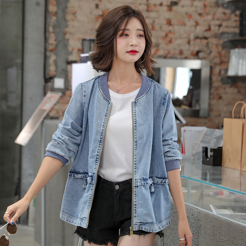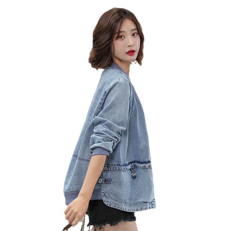 Large Size Women’s Clothing Spring and Autumn New Loose Artistic Retro Long-sleeved Denim Top Baseball Collar All-match Casual Short Coat