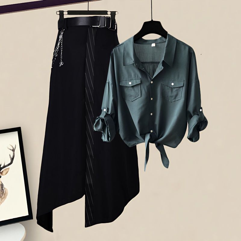 | nameOriginal | Large Size Women's Clothing Street Fashion Hong Kong Style Shirt Suit Women's 2024 Summer New Slim Look Skirt Two-Piece Set |
