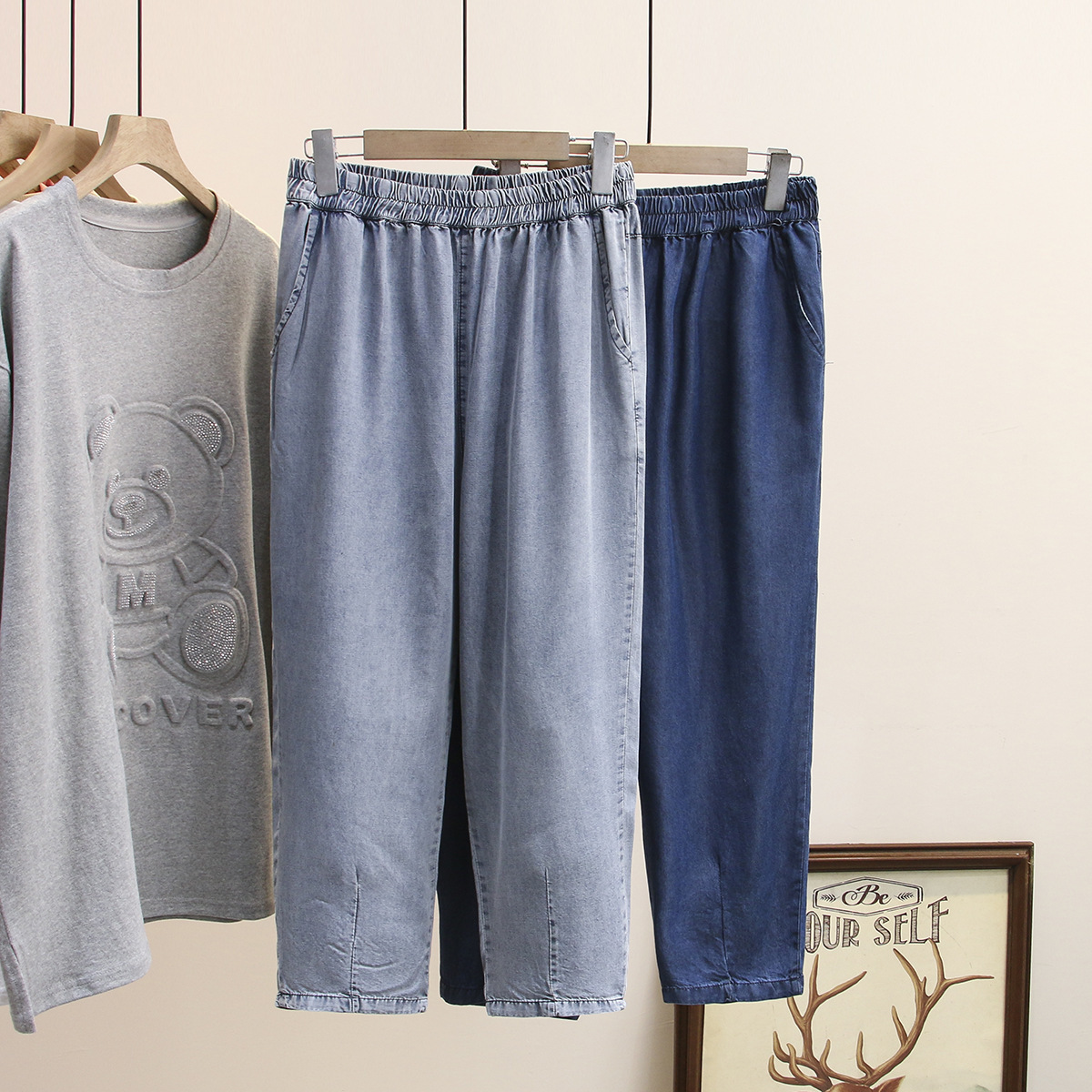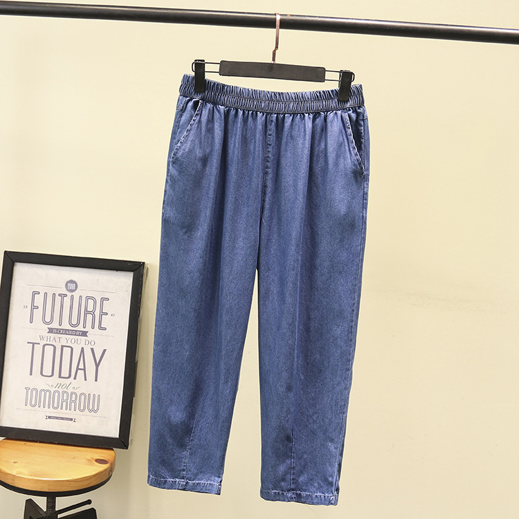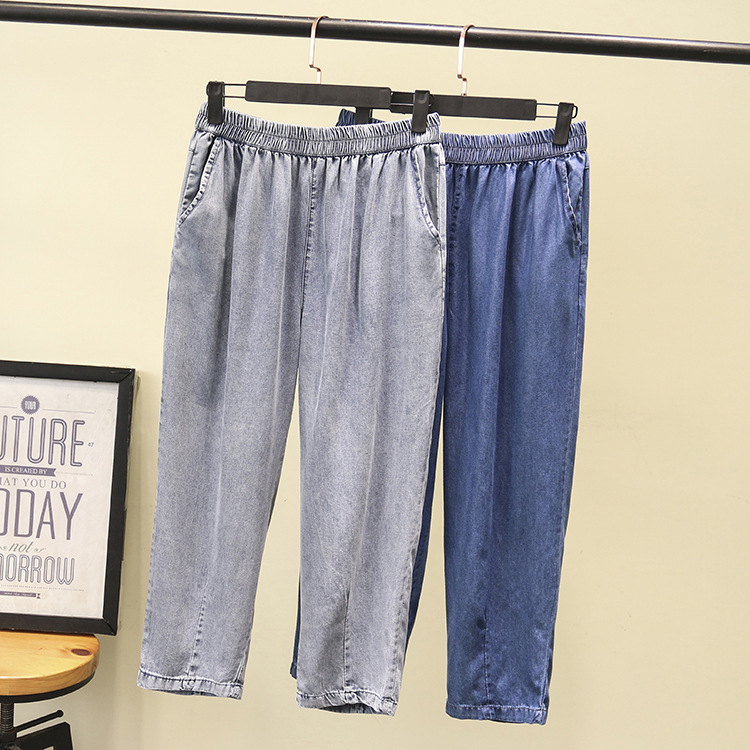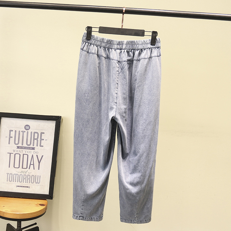 | nameOriginal | Large size women's new spring and summer 200kg fat sister slim thin casual elastic waist denim cropped pants 8971 |
