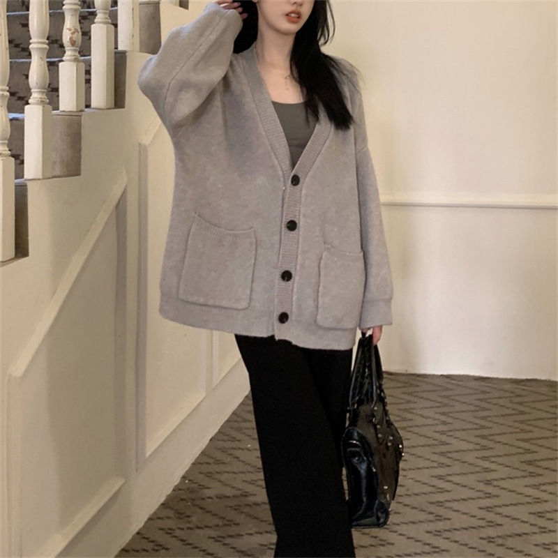 | nameOriginal | Large Size Women's Retro Sweater Coat Women's 2023 Autumn and Winter New Soft Waxy Lazy Style V-Neck Knitted Cardigan Top |