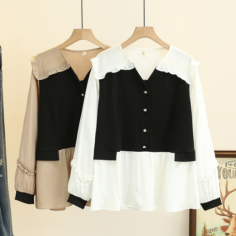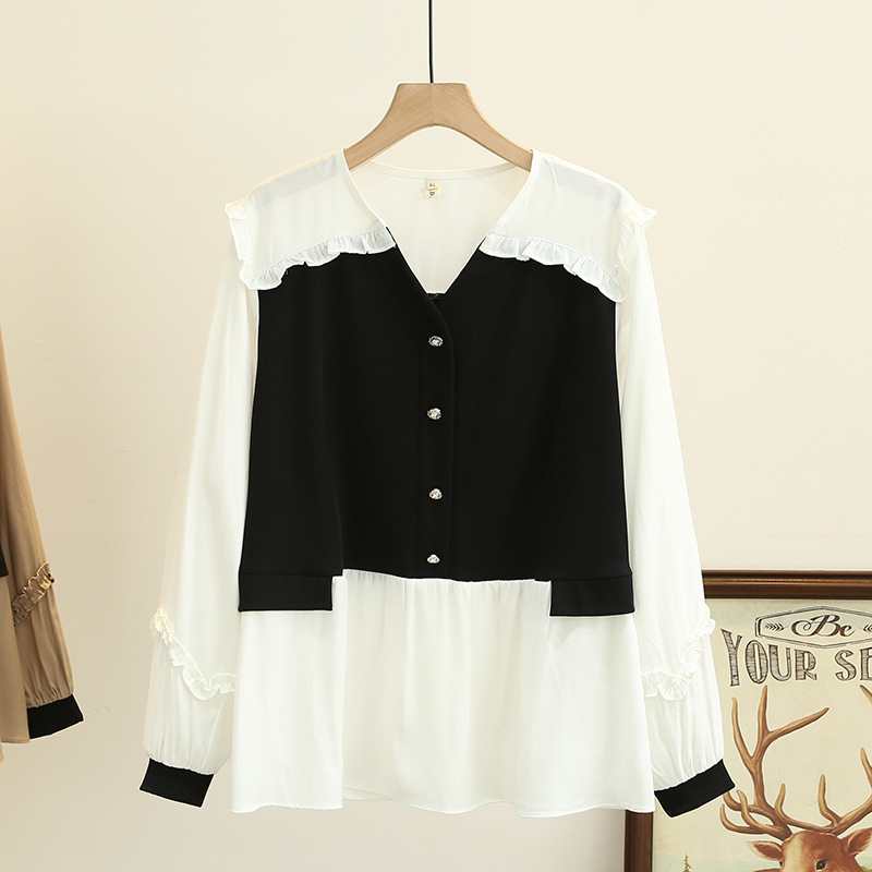 | nameOriginal | Large size women's spring new 200kg fat sister fashion Joker color matching lace shirt temperament top 7743 |