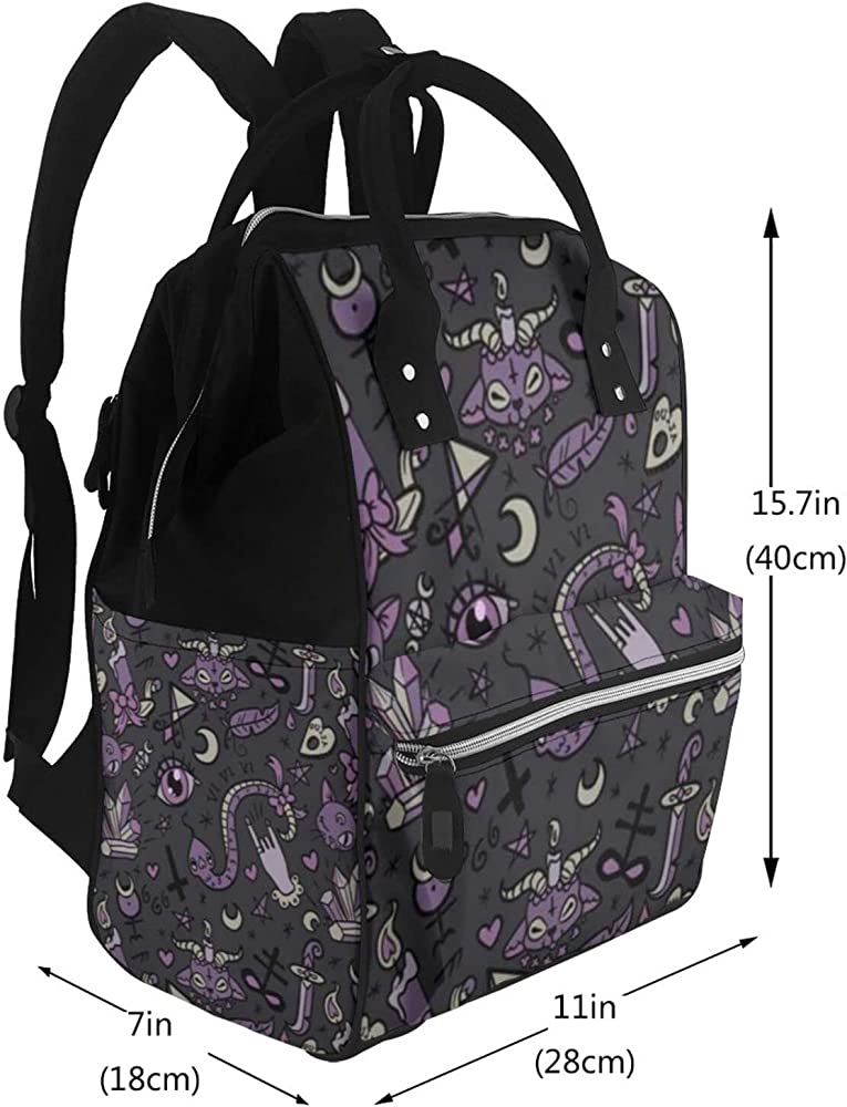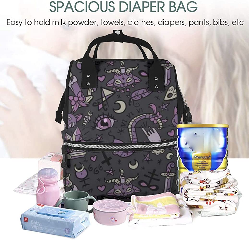 | nameOriginal | Purple Black Goth Spooky Diaper Bag Backpack For Baby Girls Boys,Large Waterproof Travel Mummy Backpack Stylish For Mom And Dad |