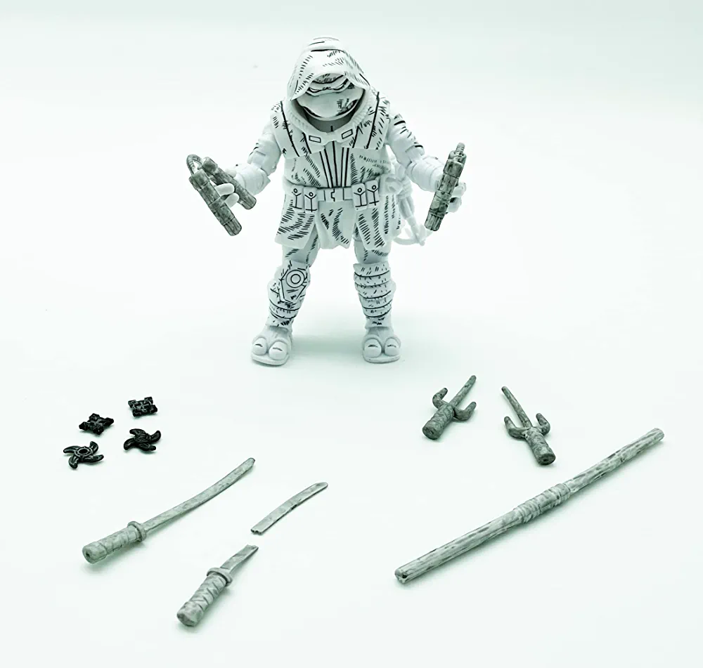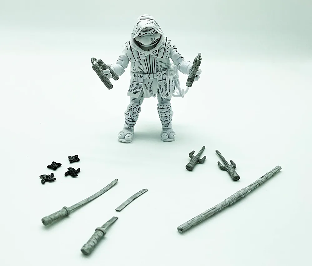 Introducing the Bandai Teenage Mutant Ninja Turtles The Last Ronin Michelangelo Action Figure in black and white! This 4.5” TMNT The Last Ronin Articulated Action Figure is a must-have for any Teenage Mutant Ninja Turtles fan. This highly detailed action figure features Michelangelo in his black and white attire from the popular comic book series, The Last Ronin. With multiple points of articulation, this figure can be posed in a variety of action-packed positions. The figure also comes with a variety of accessories, including his signature nunchucks, a grappling hook, and a backpack. This action figure is perfect for collectors and fans alike, and is sure to be a standout addition to any Teenage Mutant Ninja Turtles toy collection. Don’t miss out on the chance to own this incredible Bandai action figure!
