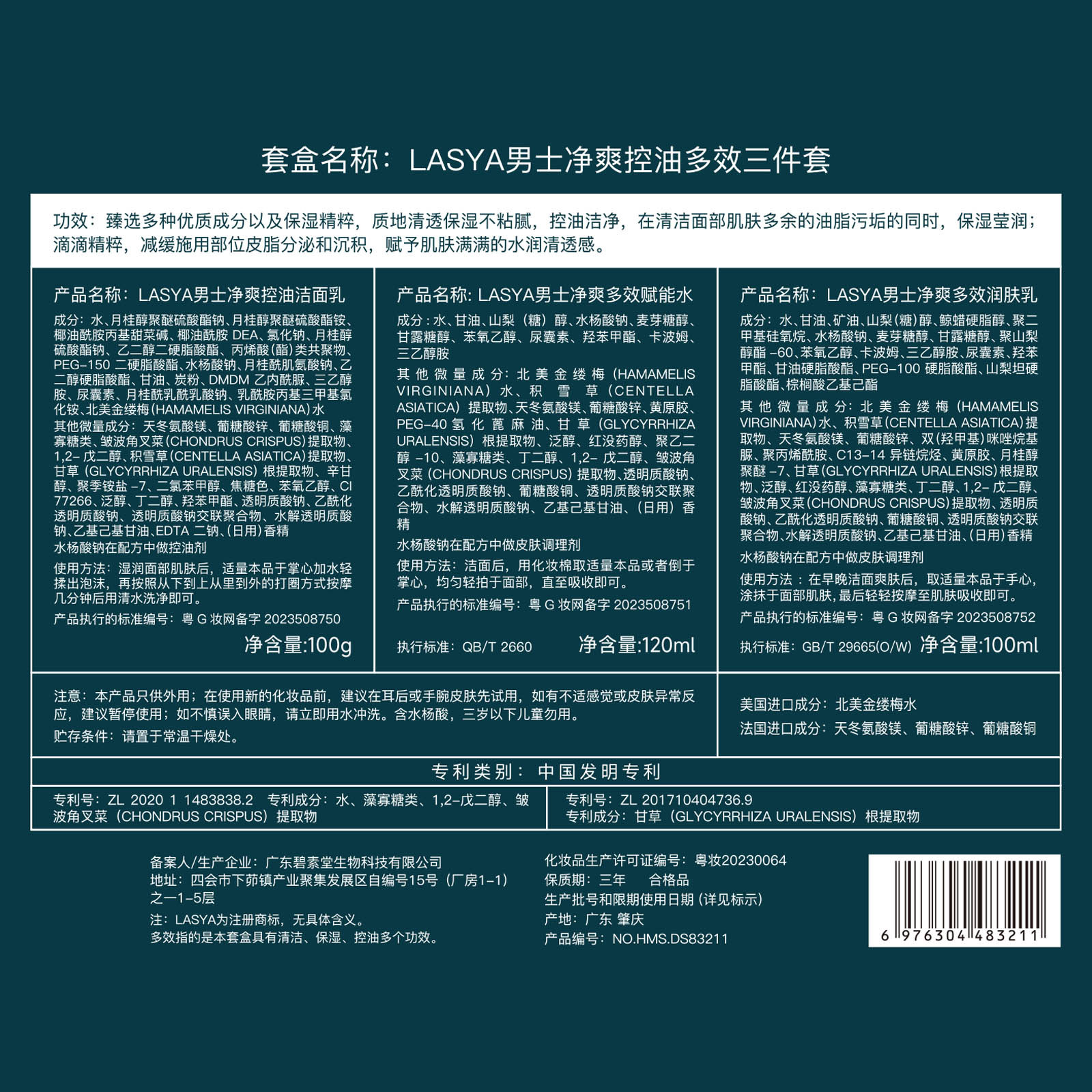 | nameOriginal | LASYA Men's Clean and Cool Oil Control Multi-effect Three-piece Set Hydrating and Moisturizing Oil Control Water Cream Skin Care suit genuine goods |