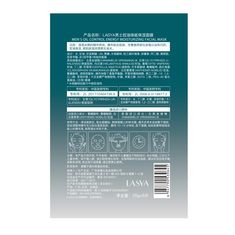 | nameOriginal | LASYA Men's Oil Control Huan Can Moisturizing Mask Hydrating Moisturizing Oil Control Men's Mask Black Mask Cloth 5 Pieces |