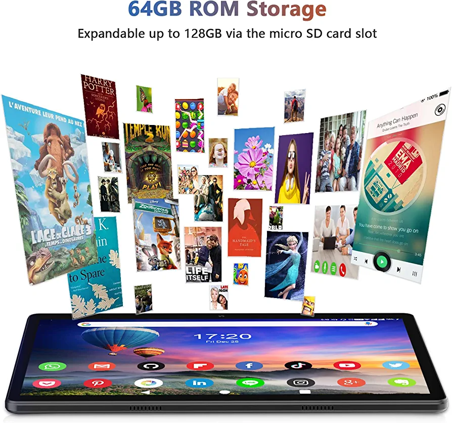 The tablet boasts 4GB RAM, 64GB internal storage, and expandable storage up to 128 GB. It is GMS Certified with basic Google apps already installed, without any bloatware or unexpected ads. You can easily download apps from Google Play, such as SKYGO, NetFlix, YouTube, and more.