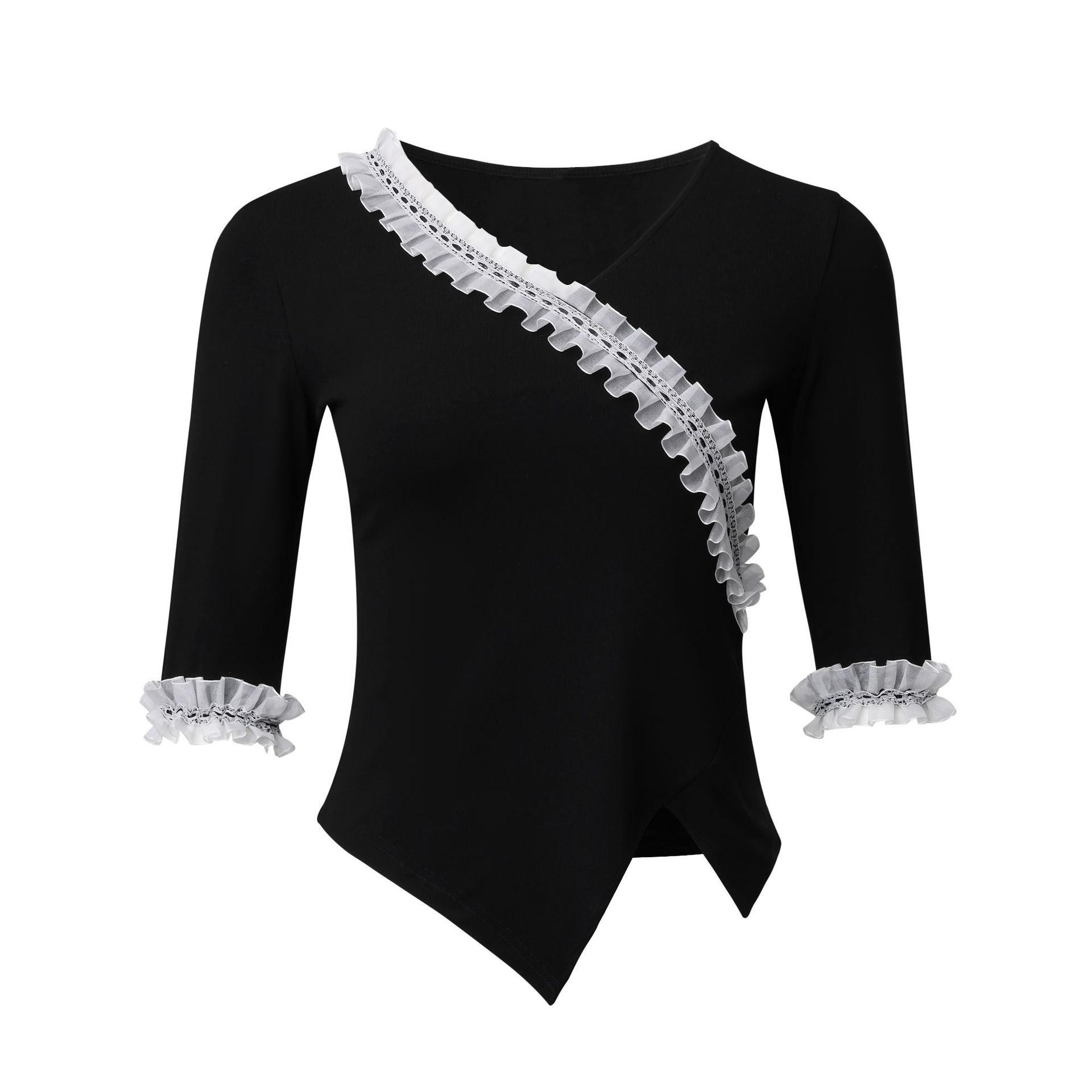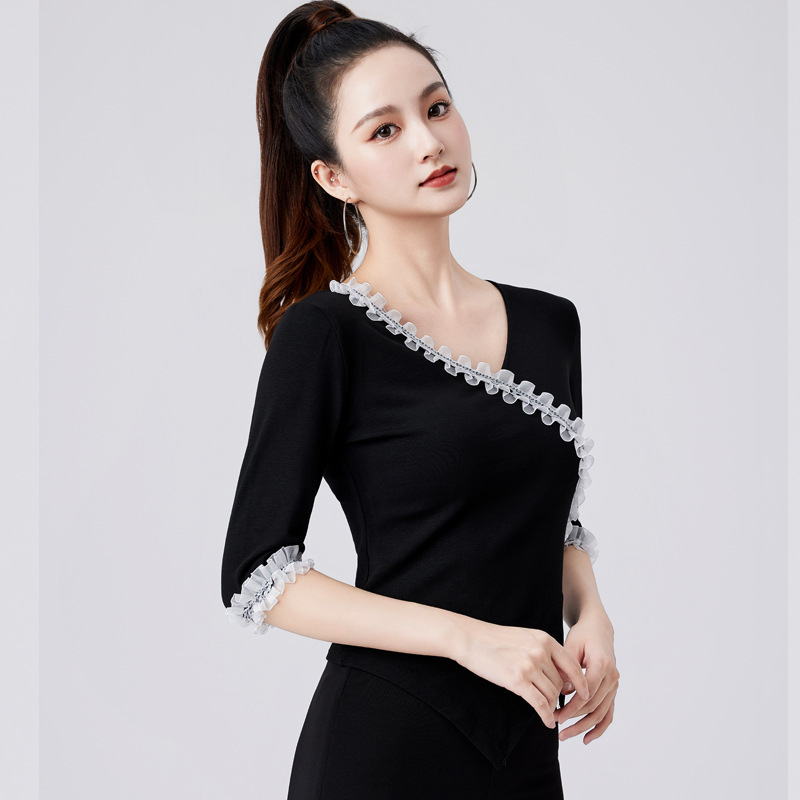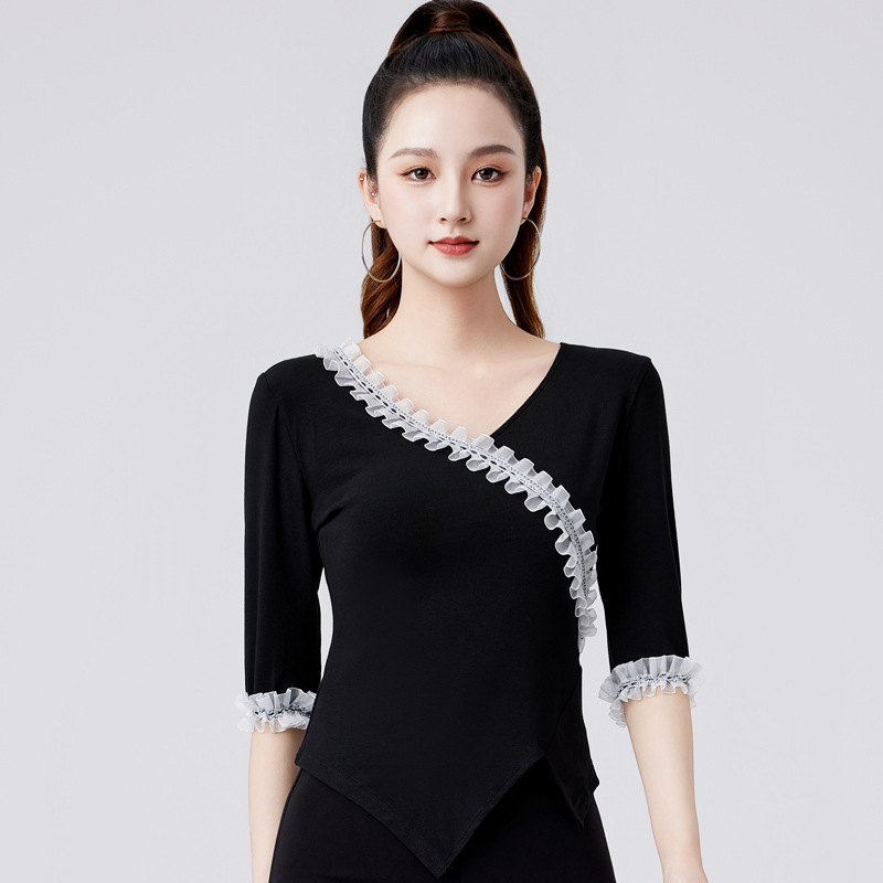 Latin Dance Top Women's New V-neck Modern Dance Costume Ruffled Dance Costume Mid-sleeve Ballroom Dance Practice Suit Summer