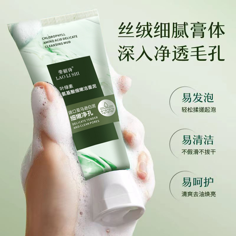 Laurishi chlorophyll amino acid delicate cleansing mud blackhead removing cleansing oil control shrink pores moisturizing facial cleanser