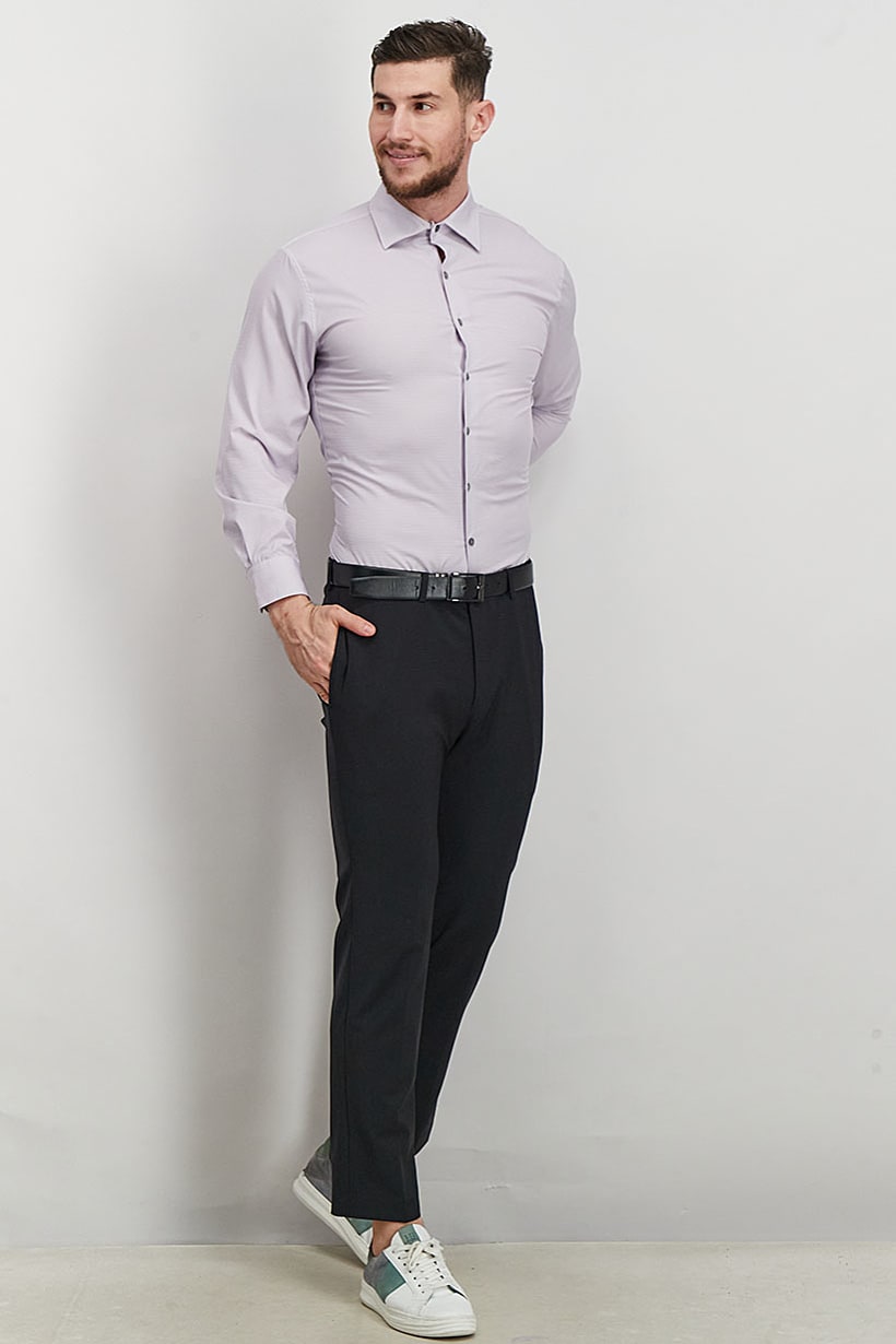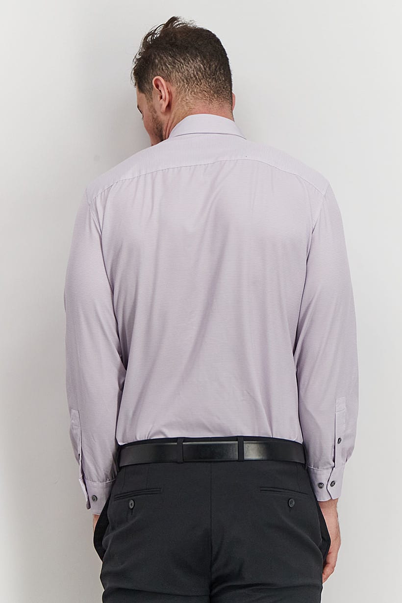 Lavender Geo Print Slim Fit Dress Shirt for Men with Spread Neckline and Long Sleeves.