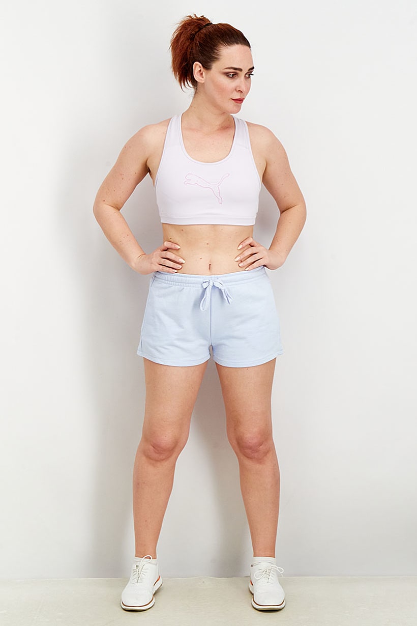 This sports bra is designed for training and has a sportswear fit. It is machine washable and made of a light, breathable fabric that is 89% polyester and 11% elastane. The brand logo is printed on the lavender-colored fabric. Please note that due to hygiene reasons, we cannot accept returns on lingerie, socks, undergarments, or swimwear. This sports bra is perfect for any sport occasion.