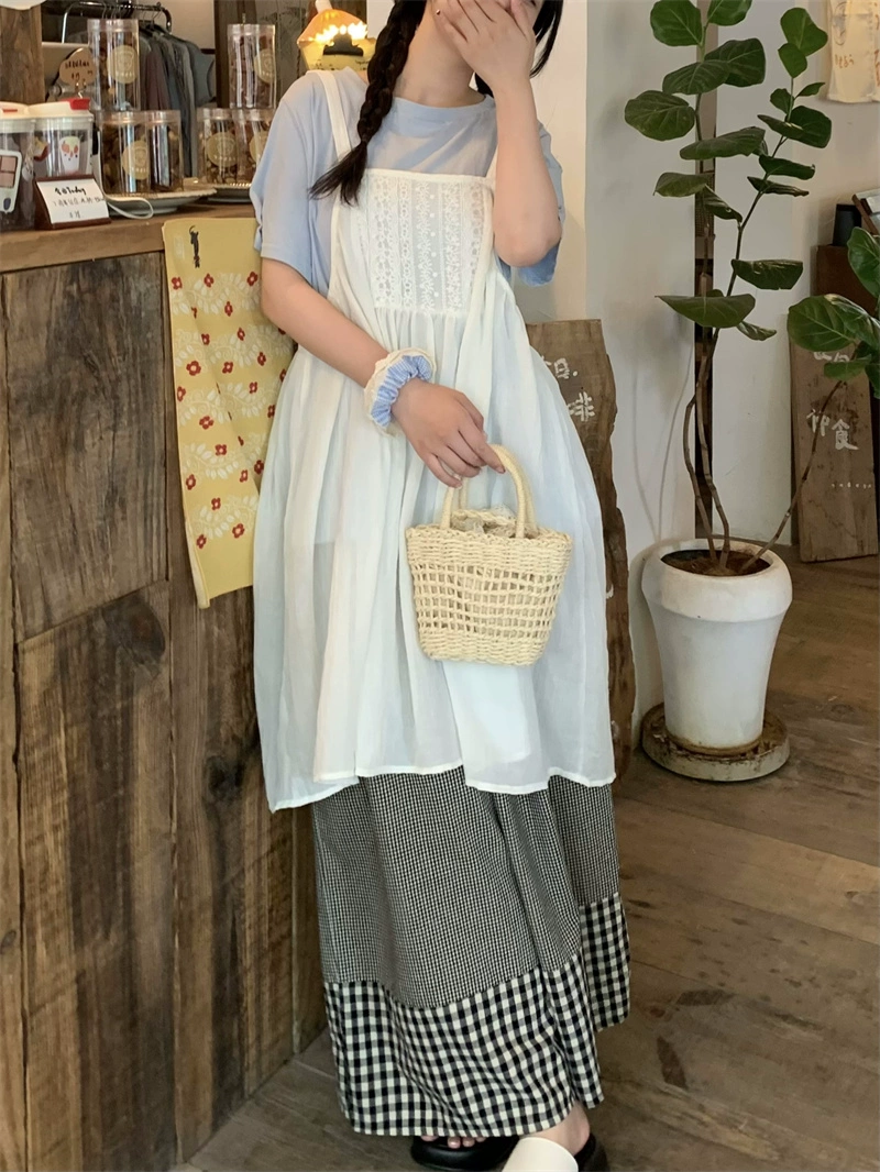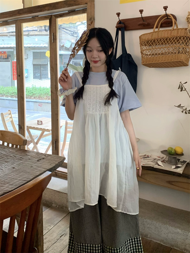 | nameOriginal | Layer a suspender dress with a short-sleeved T-shirt blouse |
