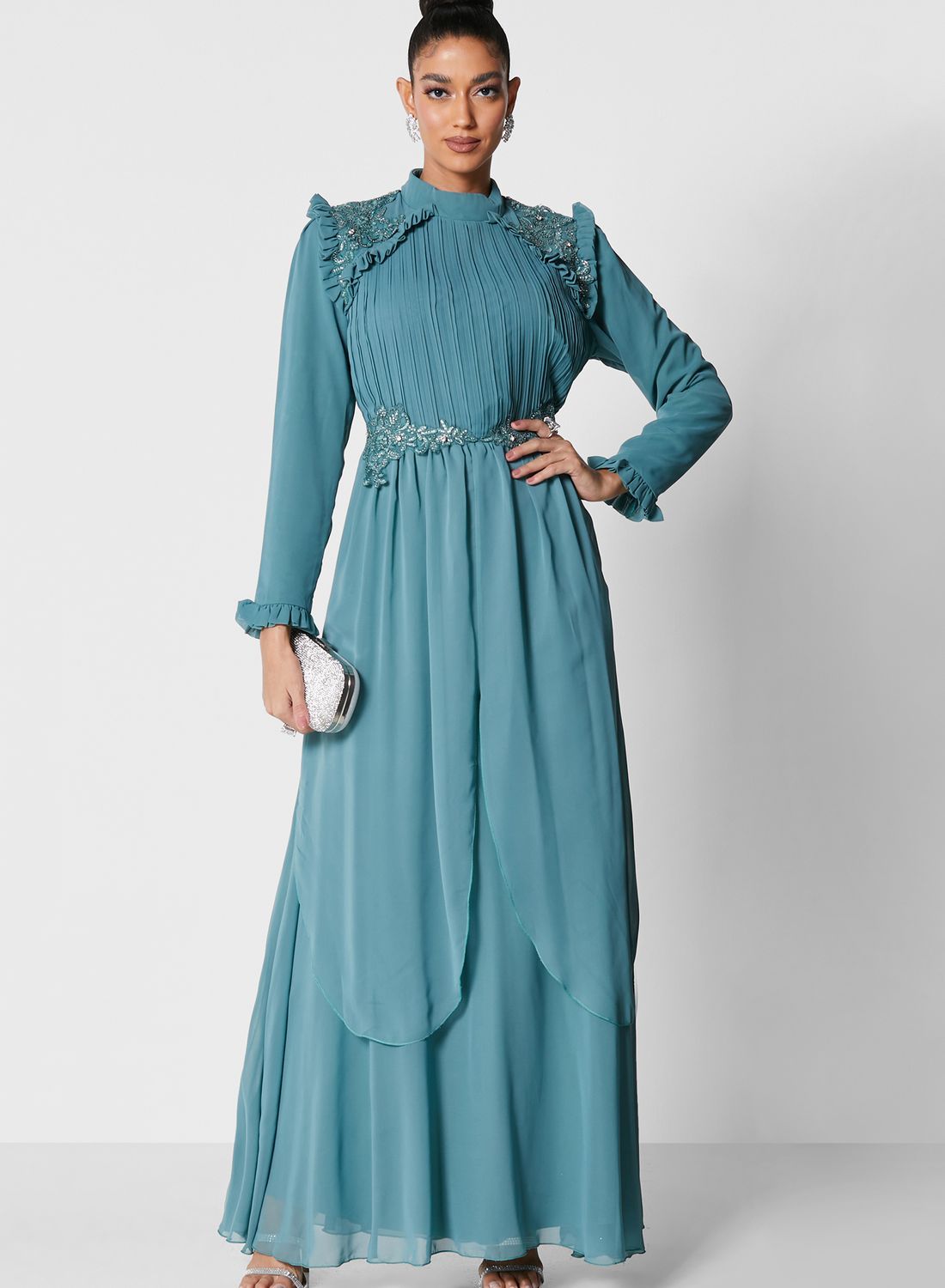 Introducing our stunning Embroidered Waist Layered Dress, the perfect addition to your wardrobe for any special occasion. This dress features intricate embroidery detailing on the waistline, adding a touch of elegance and sophistication to the overall look. The layered design of the dress creates a flowy and feminine silhouette, making it comfortable and flattering to wear. Made with high-quality materials, this dress is both durable and comfortable, ensuring you can wear it time and time again. Whether you’re attending a wedding, a formal event, or a night out with friends, this Embroidered Waist Layered Dress is sure to turn heads and make you feel confident and beautiful.
