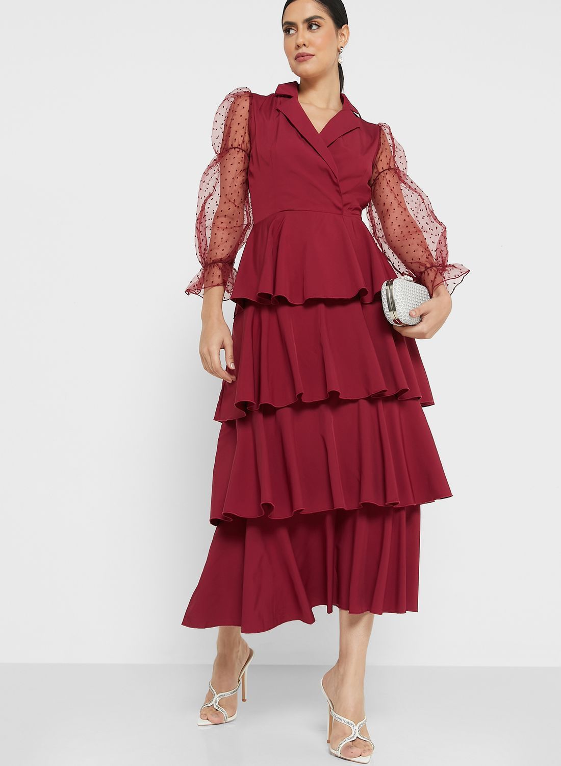 | nameOriginal | Mesh Sleeve Layered Dress |