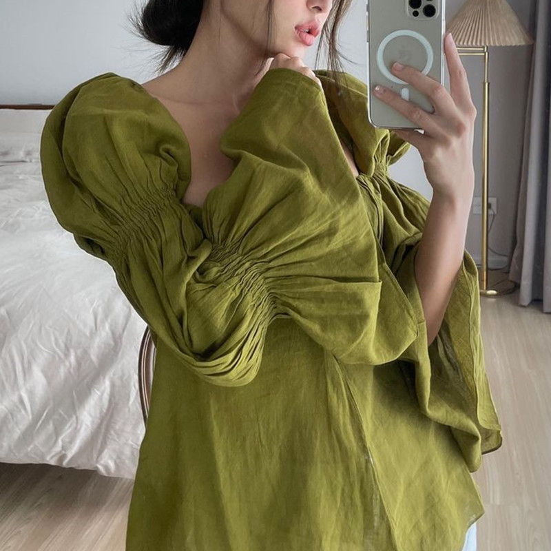 | nameOriginal | Lazada AliExpress 2021 autumn new sweet French square collar pleated horn sleeve design top women's clothing |