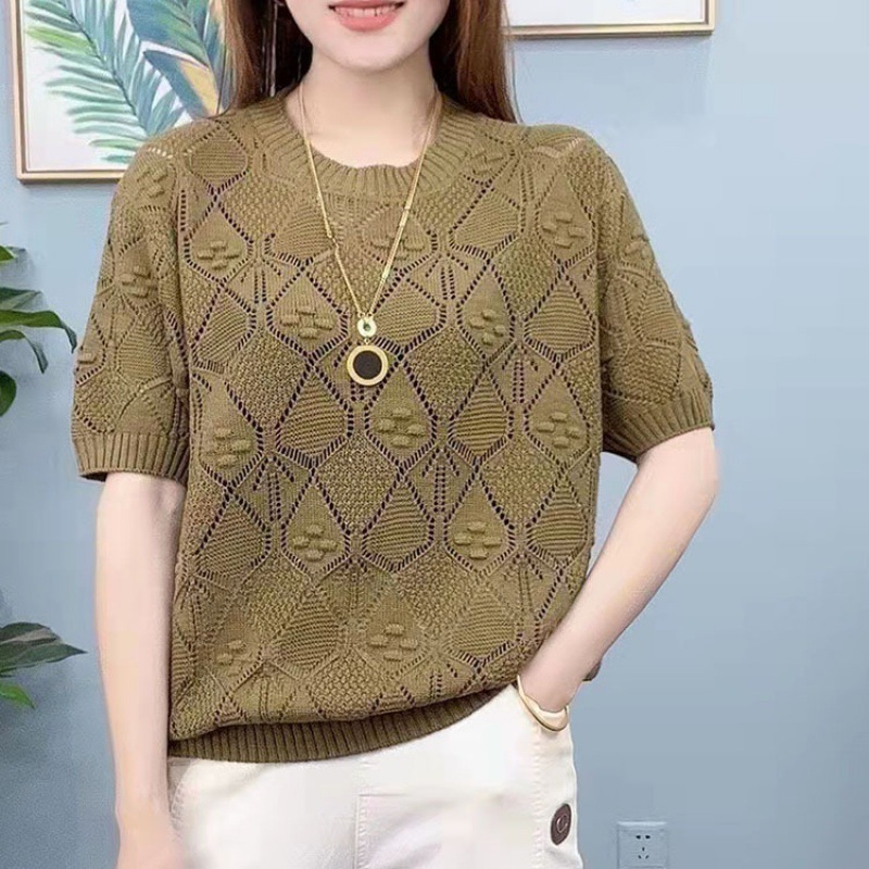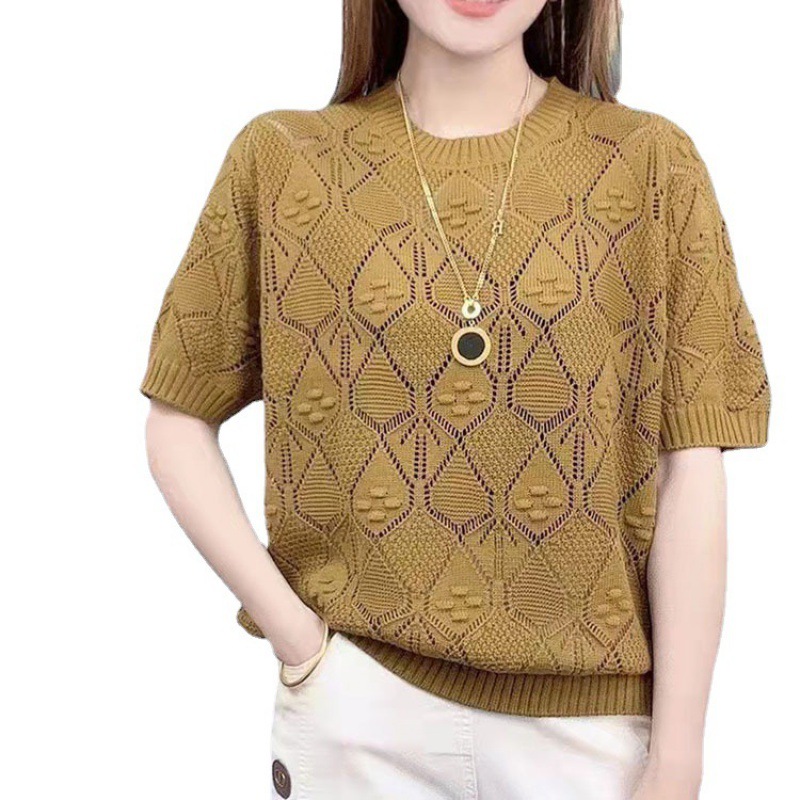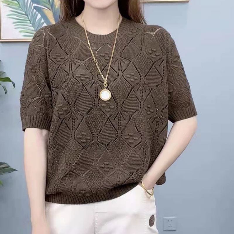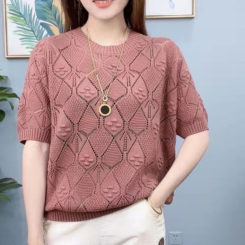 | nameOriginal | Lazada Hot Selling Short-sleeved Rhombic Hollow Knitted Shirt Mother's Loose Casual Interior Summer plus size Women's Wear |