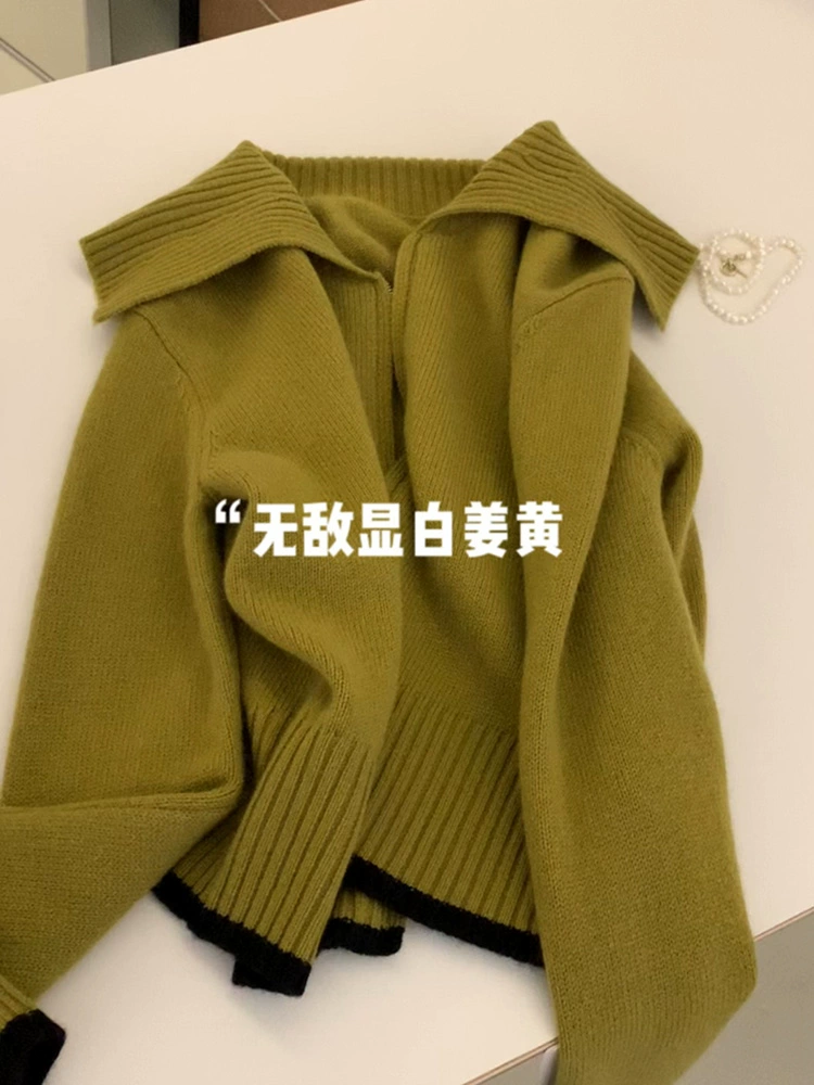 | nameOriginal | Lazy and loose ginger yellow outer zipper thickened sweater |
