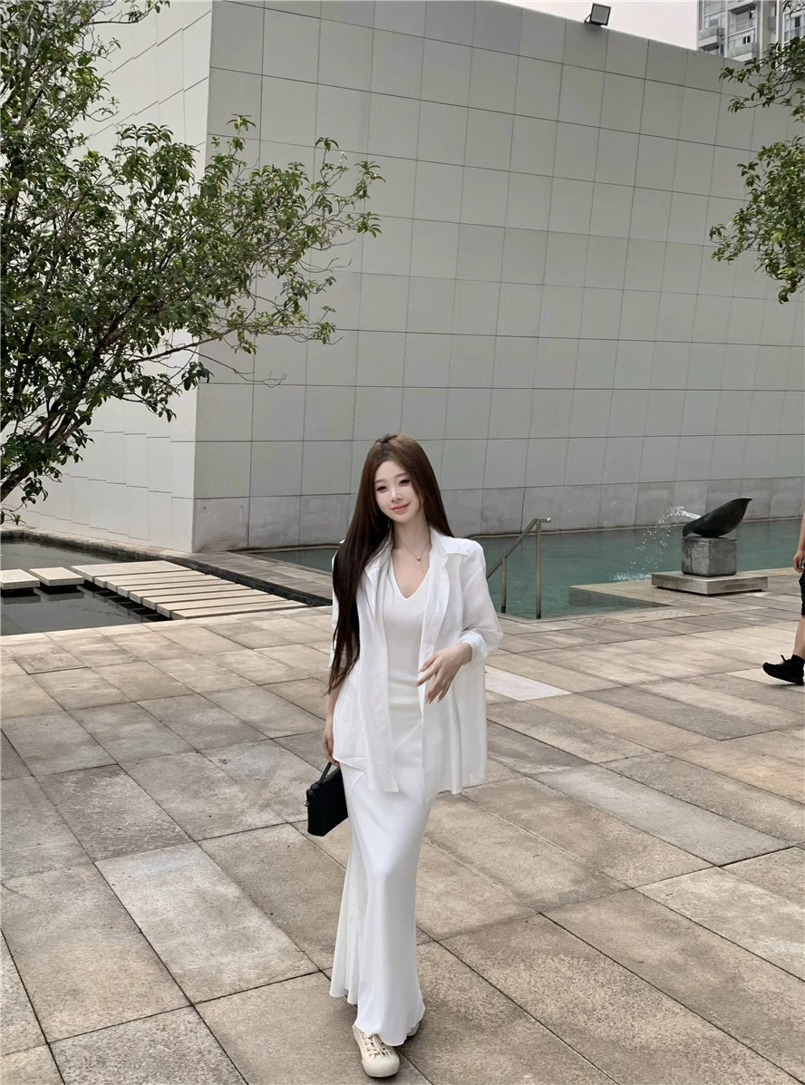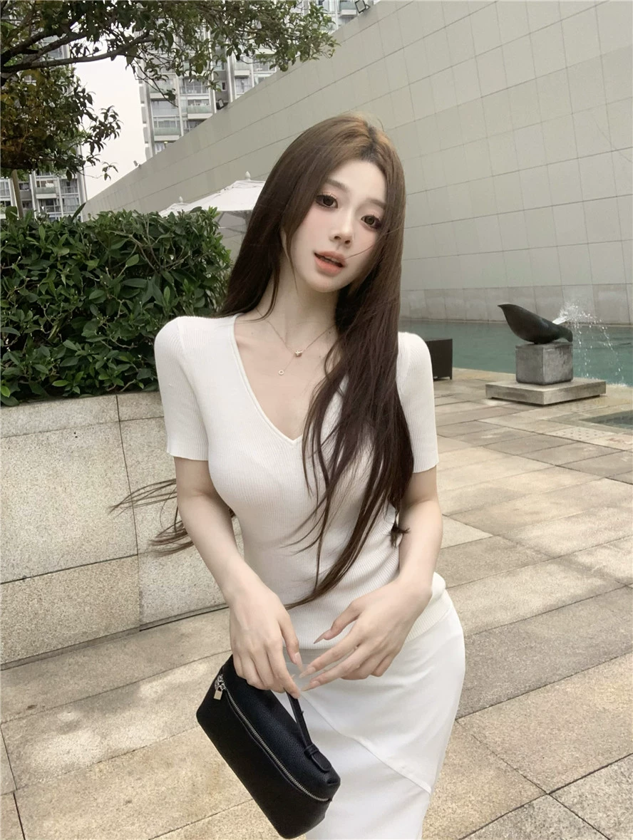 | nameOriginal | Lazy and relaxed white knitted hip-hugging long-sleeved shirt |