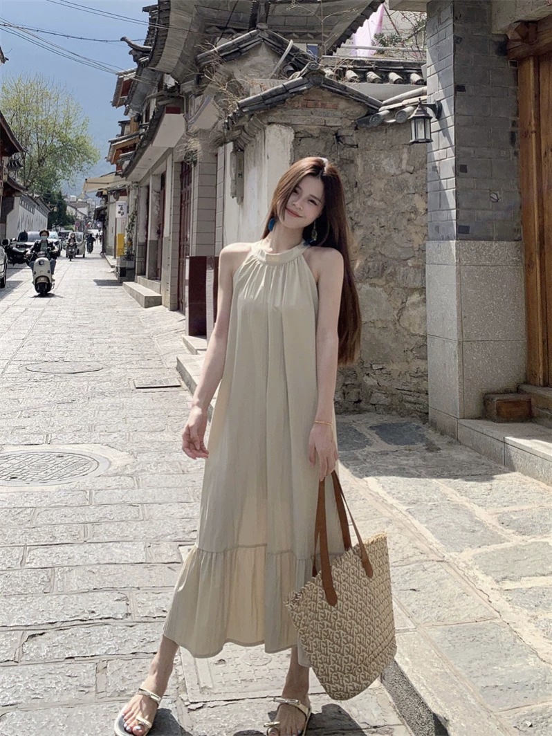 | nameOriginal | Lazy back hollow dress summer loose halter neck |