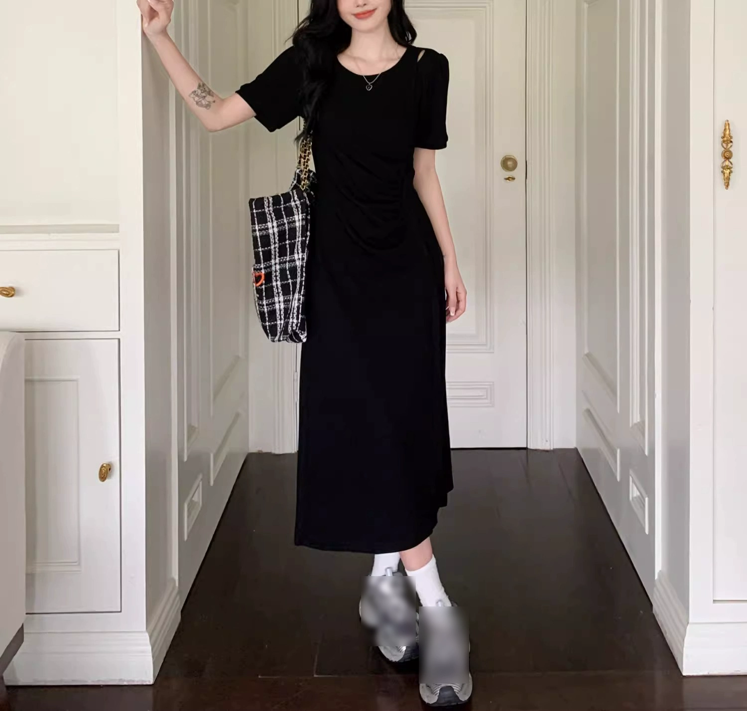 | nameOriginal | Lazy belly-covering slimming MM casual short-sleeved dress |