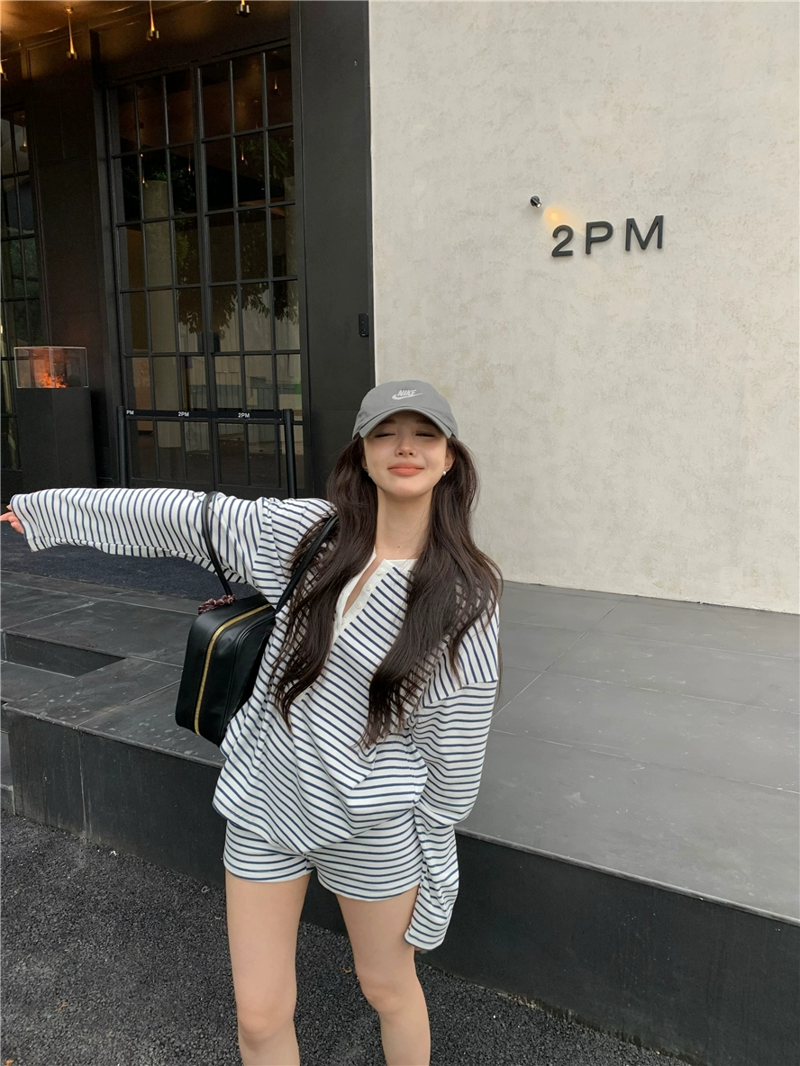 | nameOriginal | Lazy black and white striped casual women's summer long-sleeved T-shirt |
