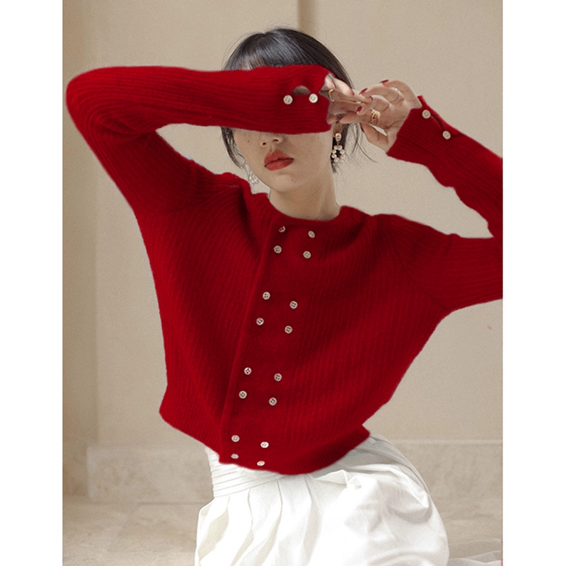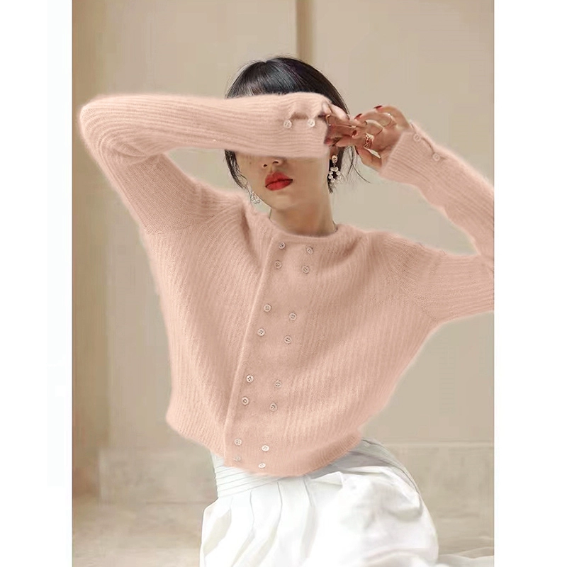 Lazy blue soft waxy sweater jacket knitted cardigan