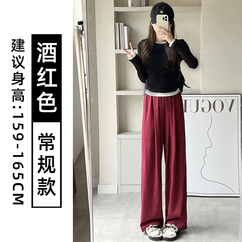 | nameOriginal | Lazy burgundy straight-leg casual high-waisted wide-leg pants |