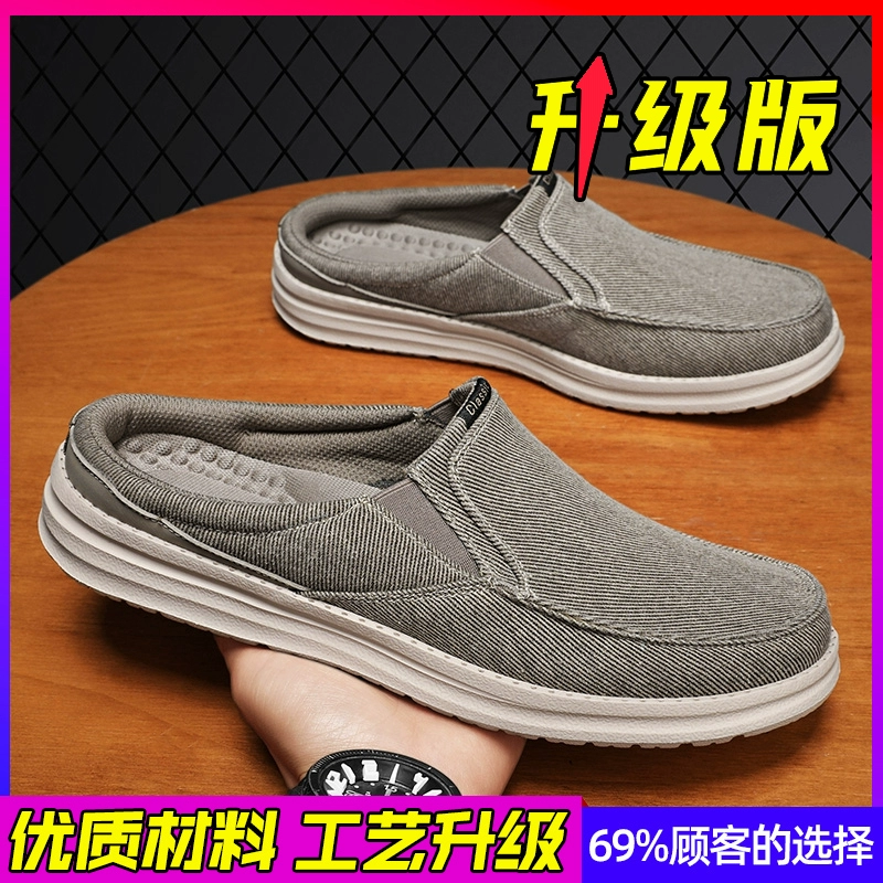 Lazy canvas breathable toe-cap half-flop casual men's shoes