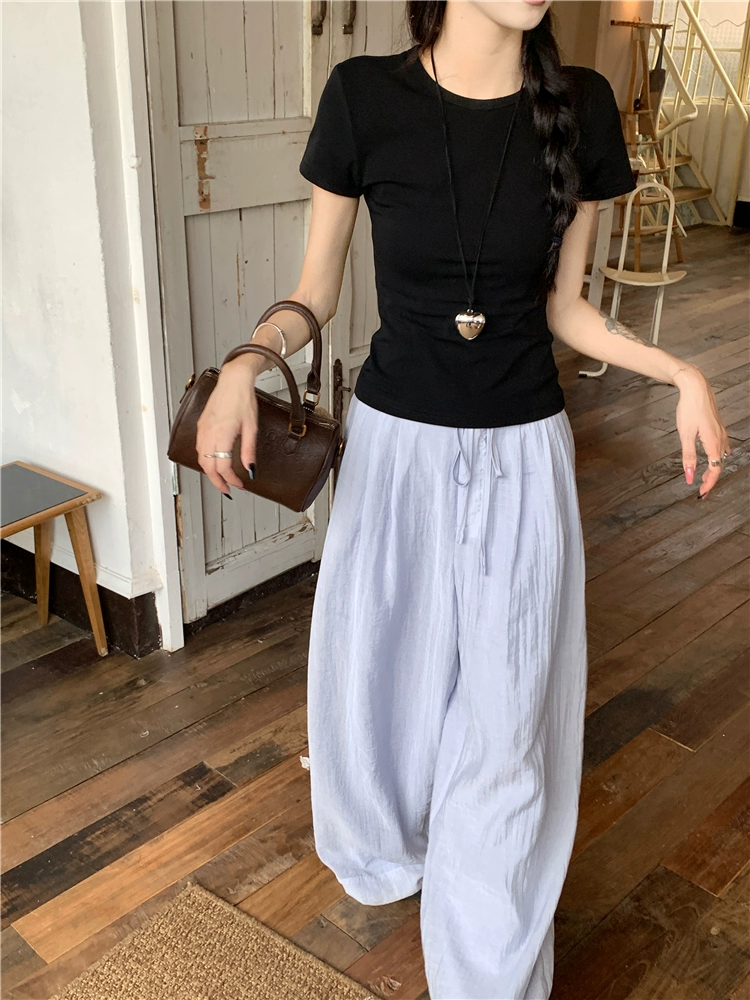 Lazy casual white elastic waist trousers short-sleeved T-shirt