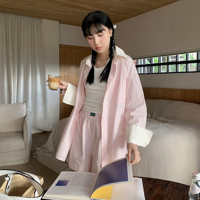 | nameOriginal | Lazy contrast striped loose casual long-sleeved shirt |