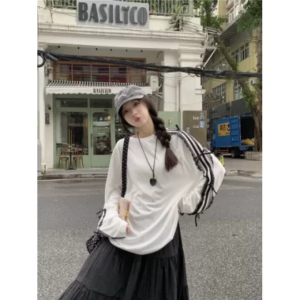 | nameOriginal | Lazy design T-shirt loose top with bow |