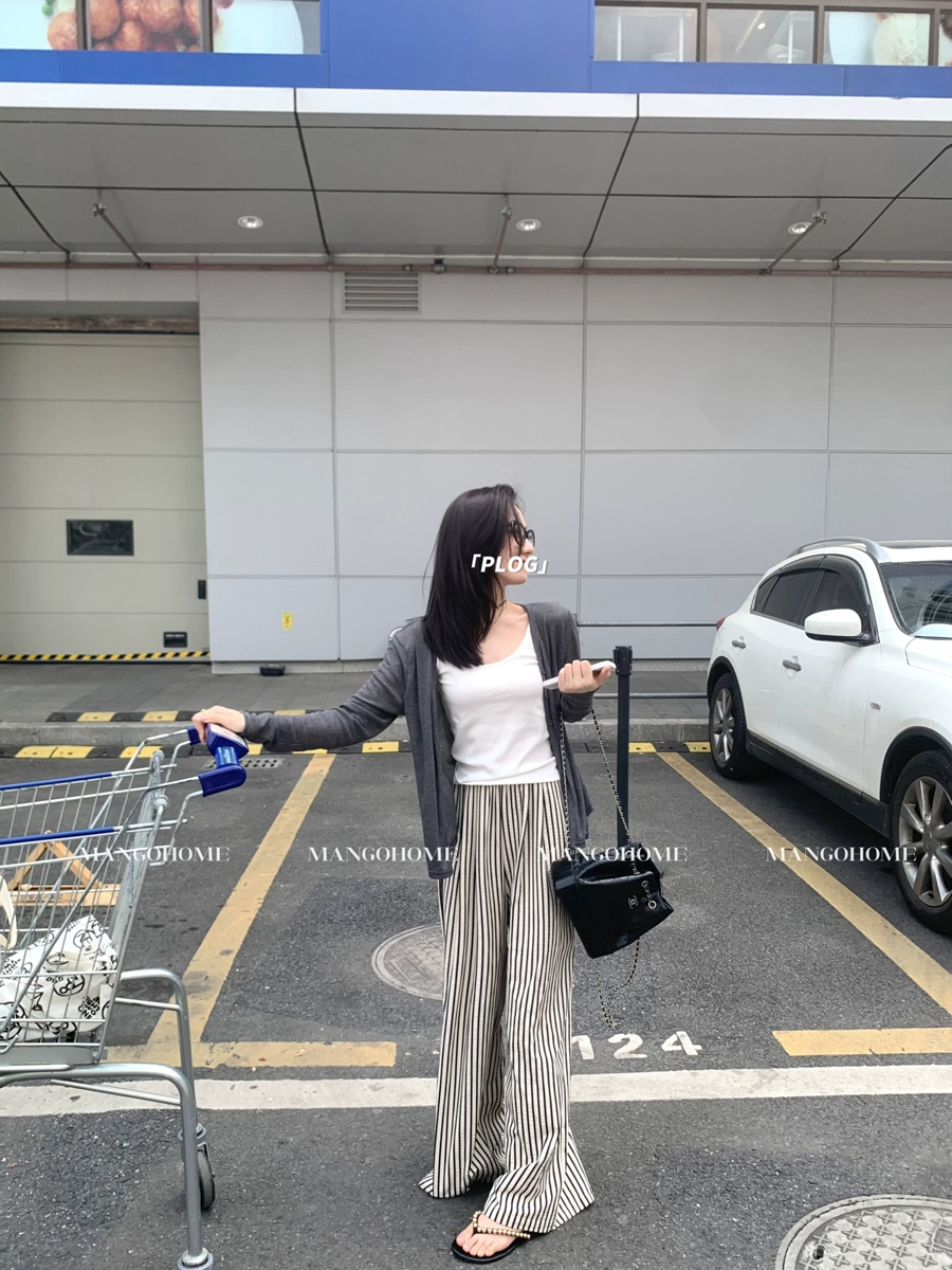 | nameOriginal | Lazy distressed high-waisted vertical striped loose casual pants |