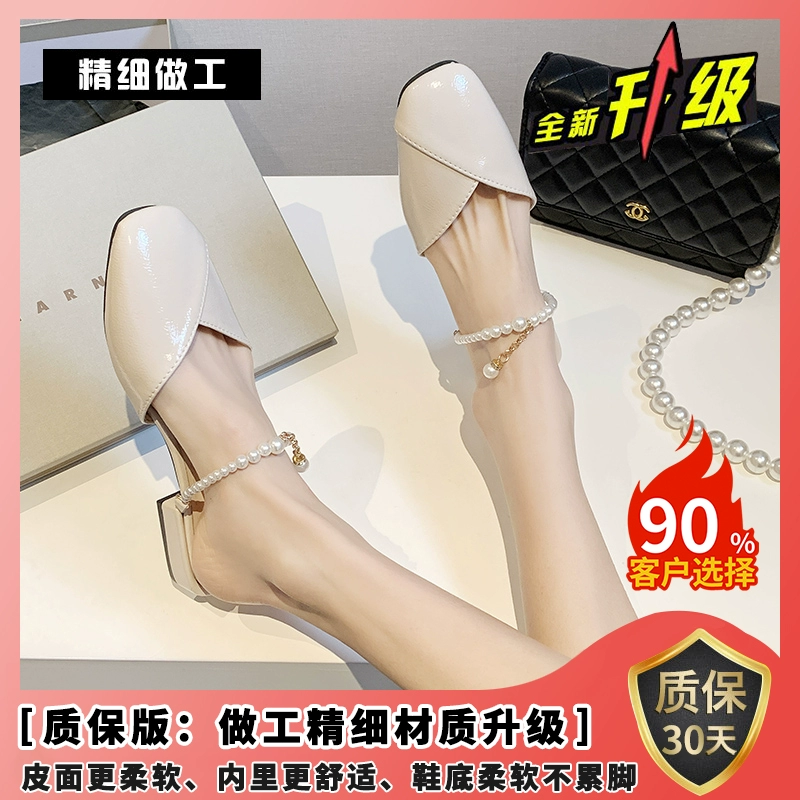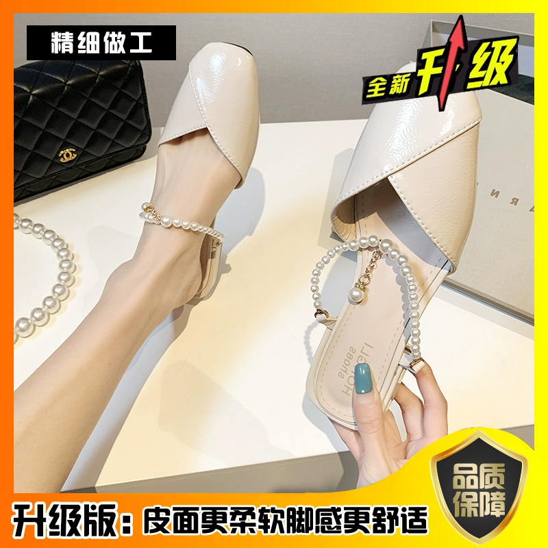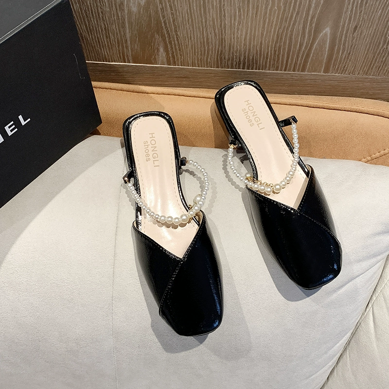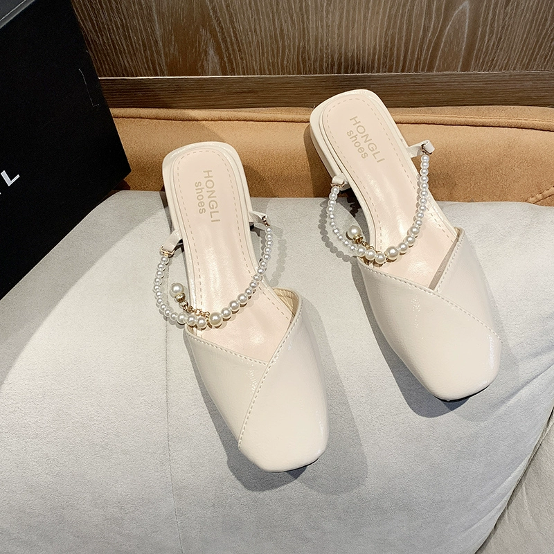 | nameOriginal | Lazy fashion fairy style pearl thick heel half slippers |