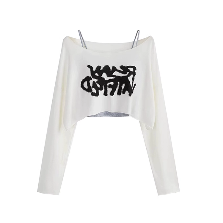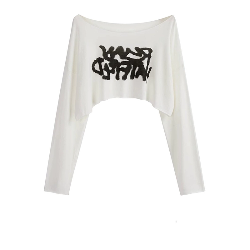 | nameOriginal | Lazy graffiti white long-sleeved T-shirt women's thin summer sun protection blouse design loose short outer top |