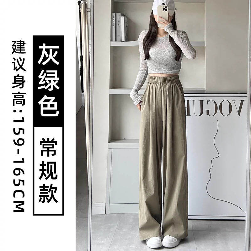 | nameOriginal | Lazy gray green casual floor-length high-waisted wide-leg pants |