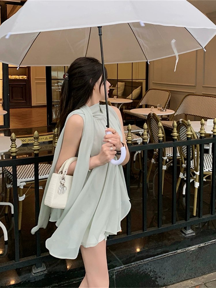| nameOriginal | Lazy green ribbon chiffon sleeveless summer top |