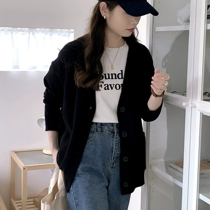| nameOriginal | Lazy Korean style high-end knitted cardigan black sweater |