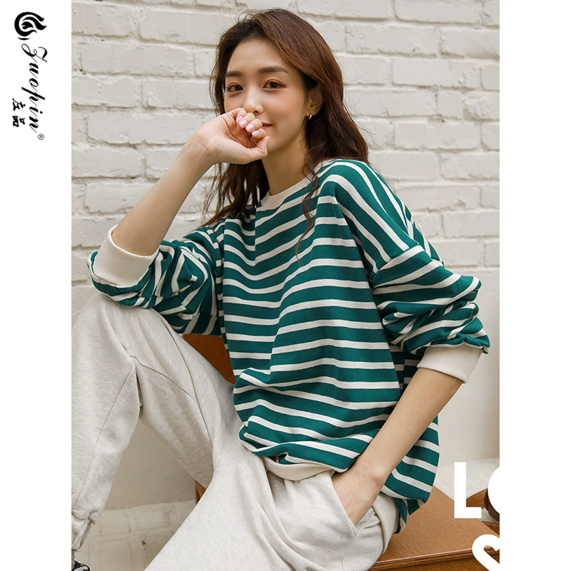 | nameOriginal | Lazy loose large size green striped long-sleeved T-shirt |