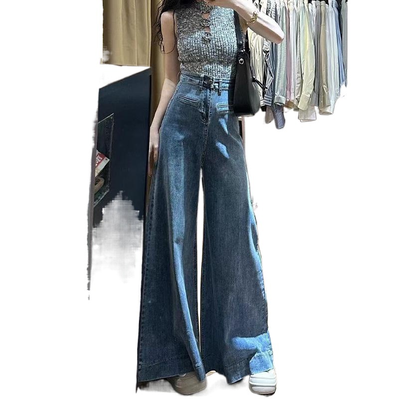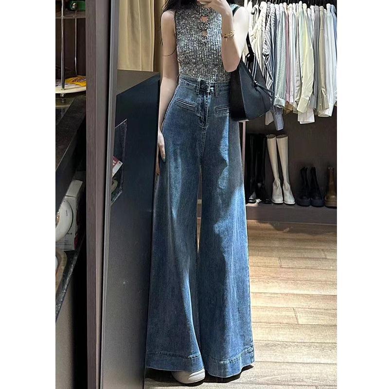 Lazy Loose Slim Wide Leg Jeans Women’s Spring 2024 American Style High Street Draping Wide Leg Pants
