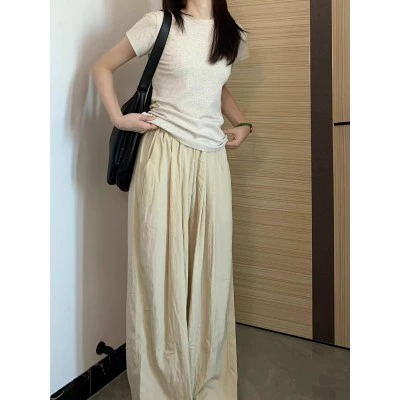 | nameOriginal | Lazy milky apricot summer thin high-waisted draped pants |