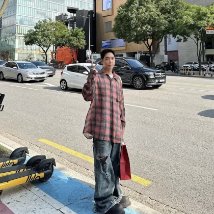 | nameOriginal | [Lazy Niche] Our Legacy Plaid Shirt Washed Long Sleeve Unisex Casual Outer Jacket Trendy |