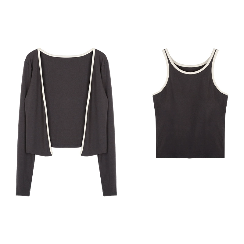 Lazy padded vest striped three-piece cardigan