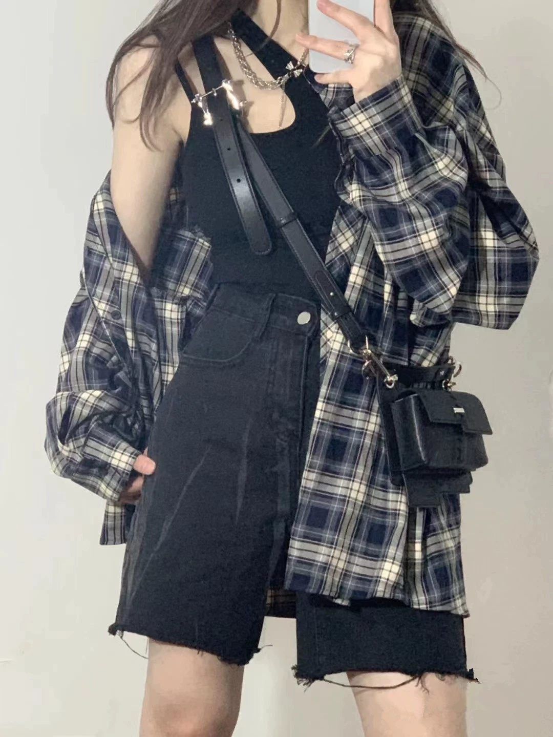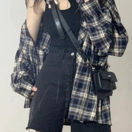 Lazy plaid niche autumn long-sleeved sun protection shirt