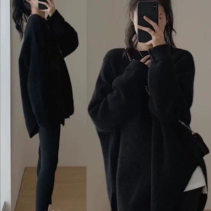 | nameOriginal | Lazy raccoon fleece sweater with retro style slit pullover |
